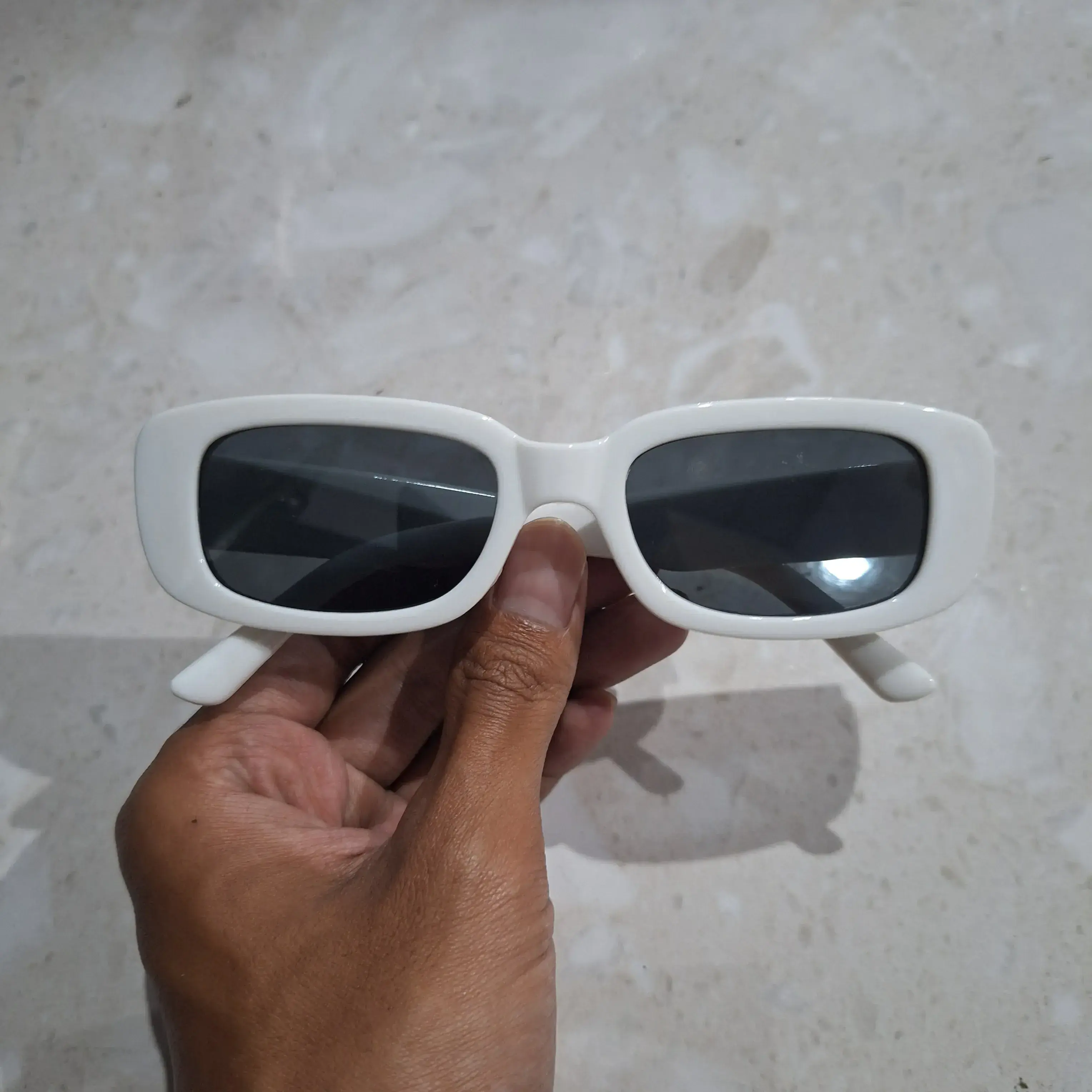 Kacamata ini nggak cuma buat gaya, tapi juga bantu lindungi mata dari sinar matahari.